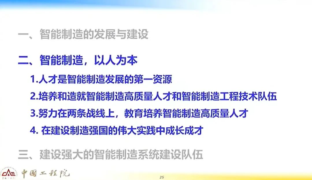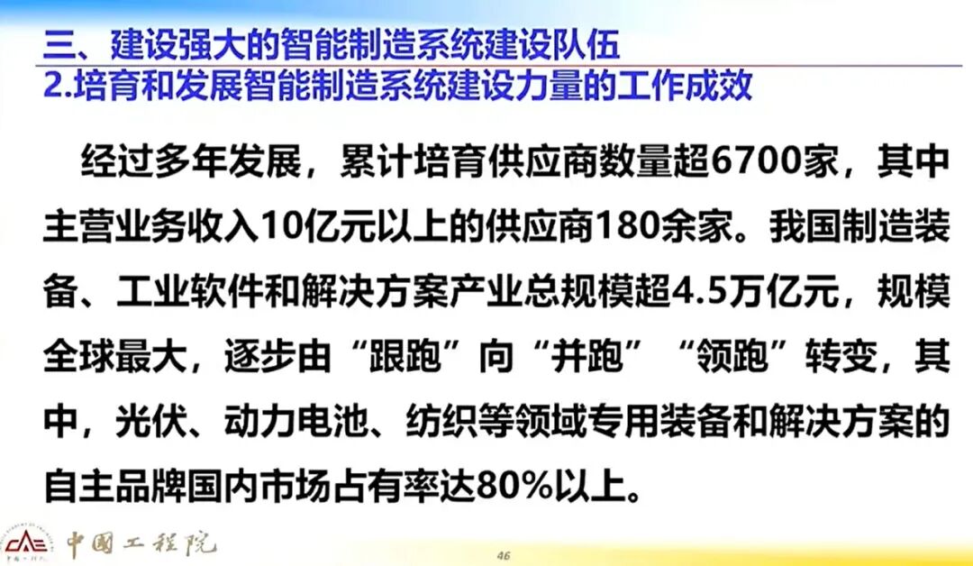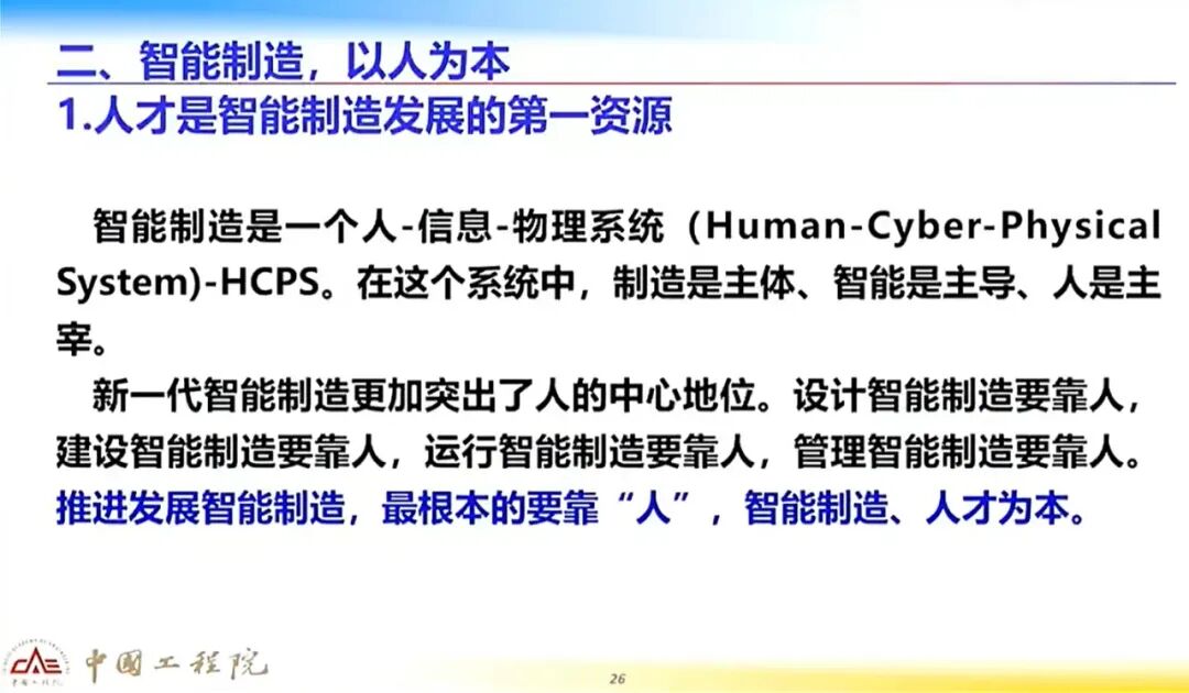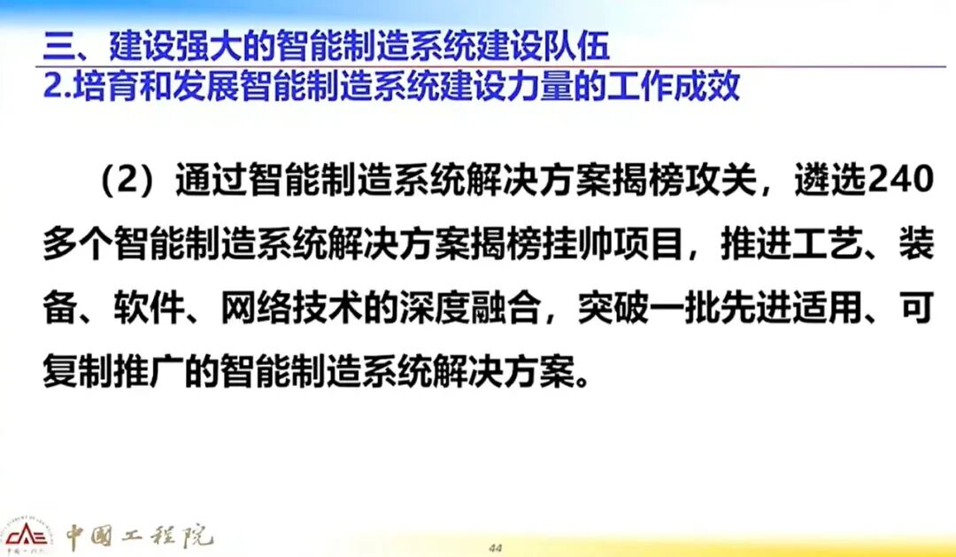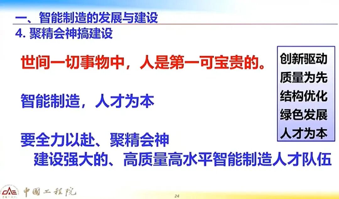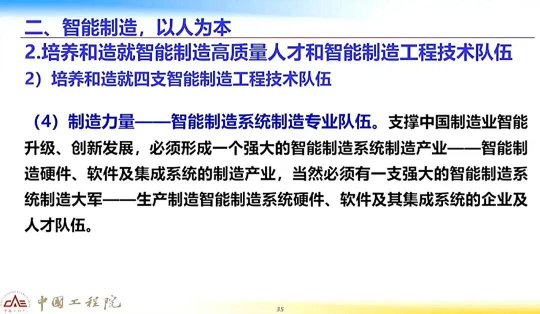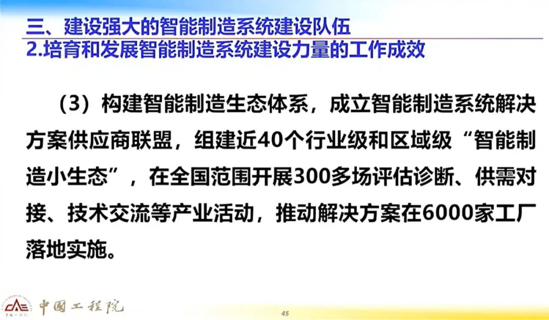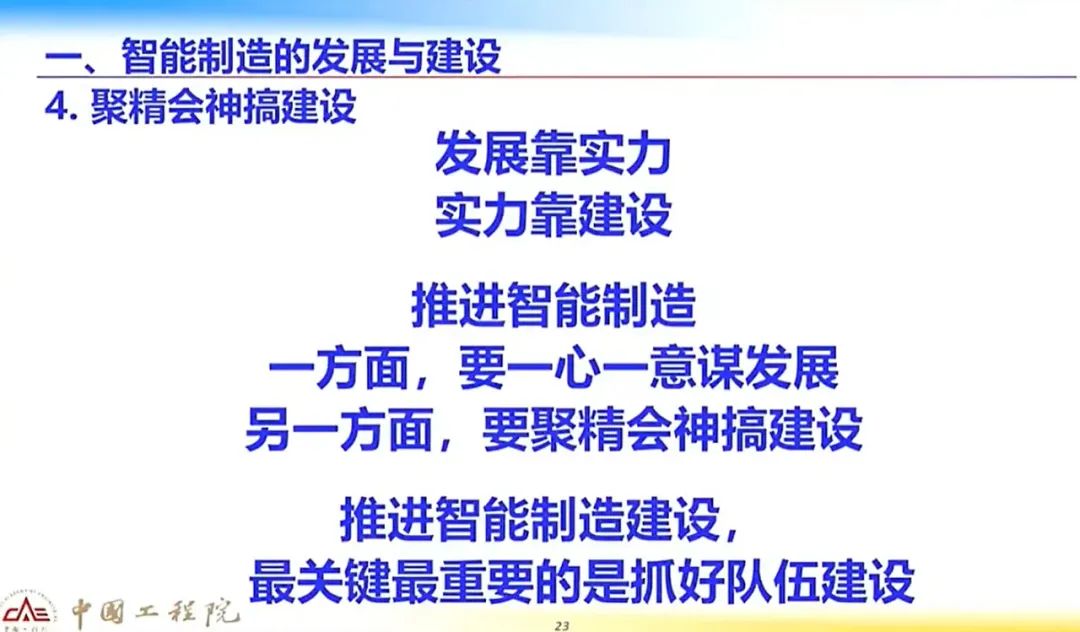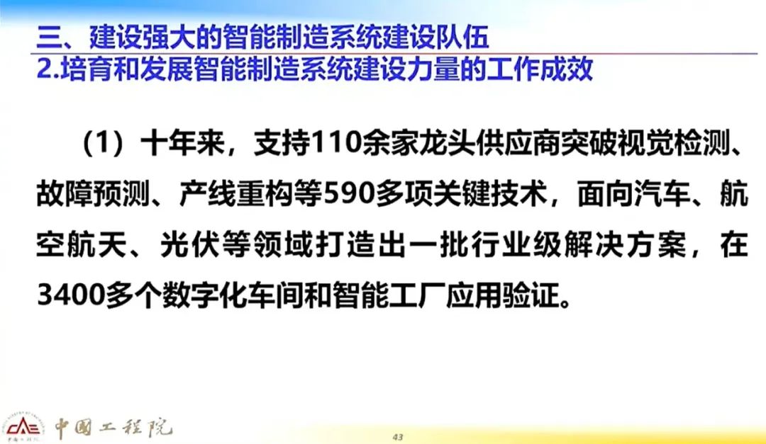 周济主任在《建设强大的智能制造系统建设队伍》主旨报告中强调,智能制造本质上是一个人-信息-物理系统,核心关键在于“人”,必须培养和造就智能制造高质量人才和智能制造工程技术队伍。他指出,解决方案供应商作为智能制造的主要建设力量、应用实施的重要推动者和自主供给的核心支撑,在智能制造发展中被赋予了重要使命。