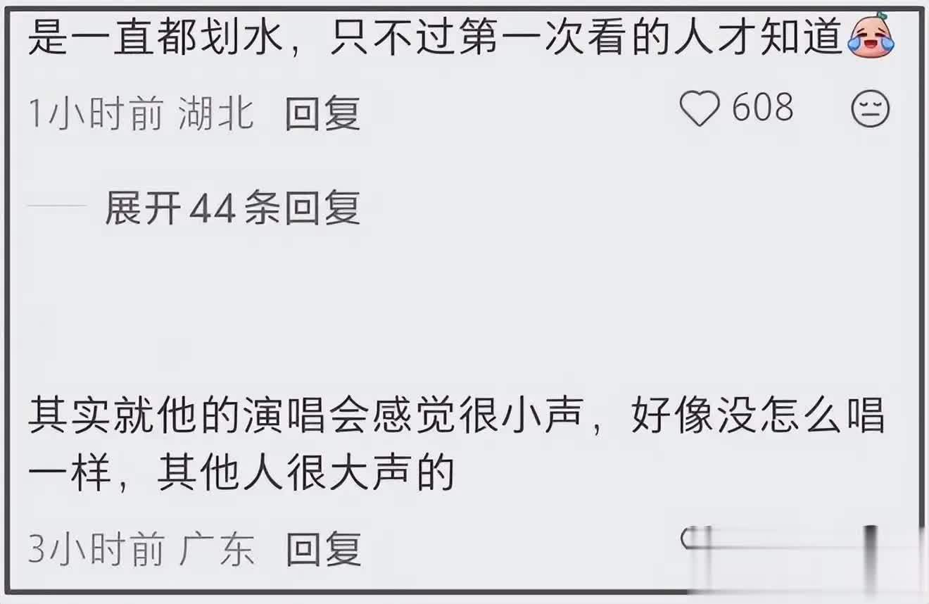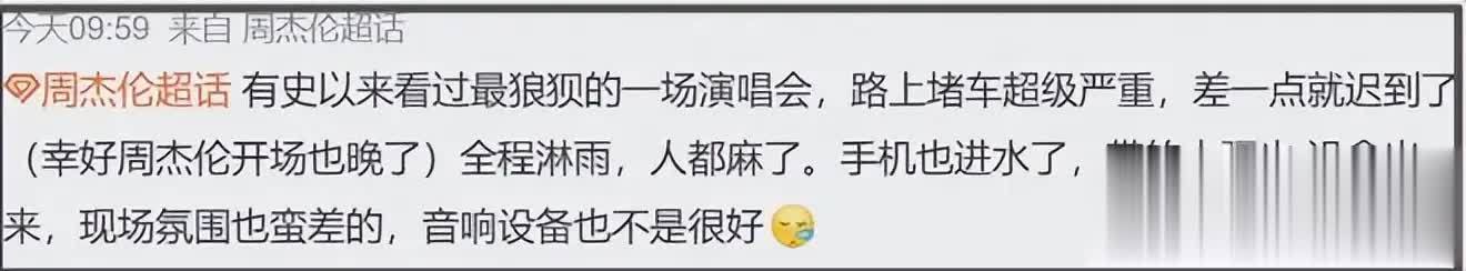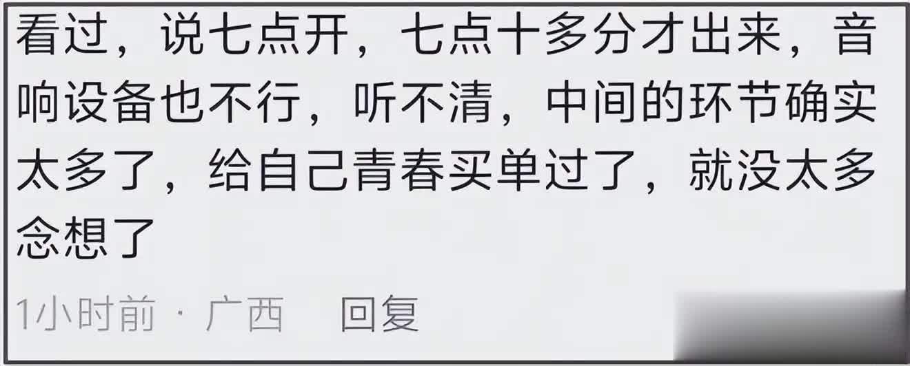有花上万元买黄牛票的观众崩溃吐槽:「暴雨里站了 5 个小时,结果看了场大型综艺串场,偶像唱没几首,全程在聊天、互动、让别人代唱,这钱花得太冤了」。